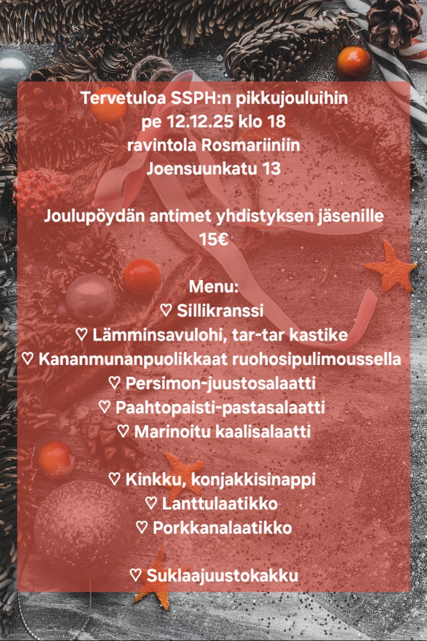 Ilmoittaudu mukaan 1.12.25 mennessä sähköpostilla, ja kerro samalla mahdolliset ruokarajoitteet